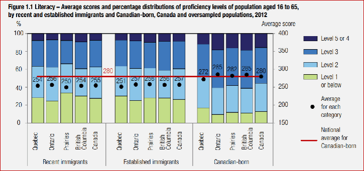 PIAAC 2012, Immigrants in Canada: http://www.piaac.ca/docs/PIAAC%202012%20Immigrants%20Canada%20Final%20EN.pdf