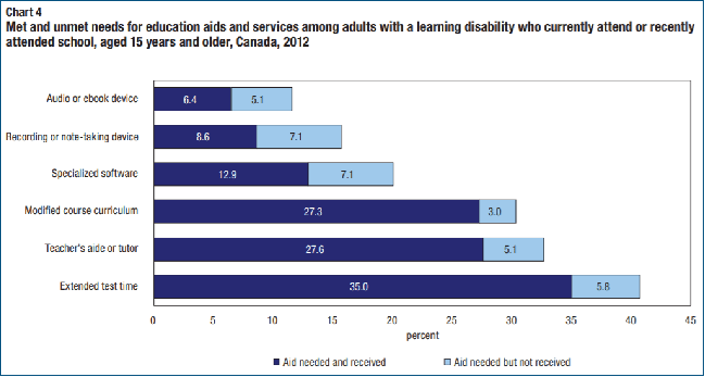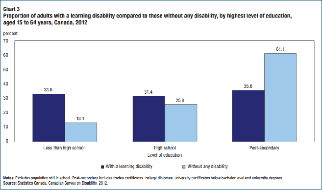 - In Canada, adults with learning differences are more likely to have overall lower rates of completing education (Stats Canada, Canadian Survey on Disabilities, 2012)