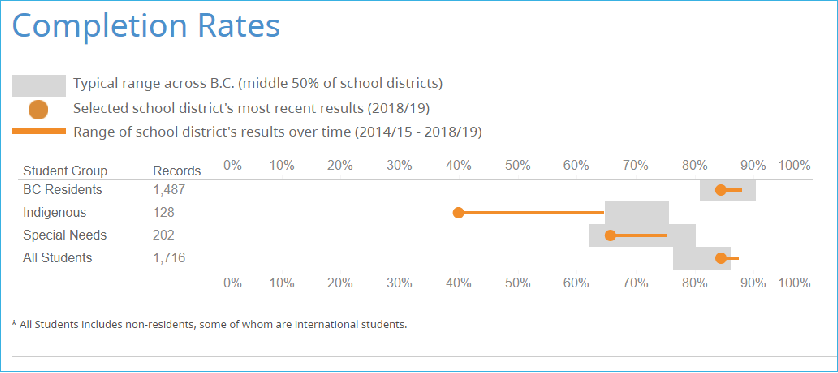 - Only 65-76% of Indigenous students in BC graduate from high school compared to 76%-86% for non-indigenous students