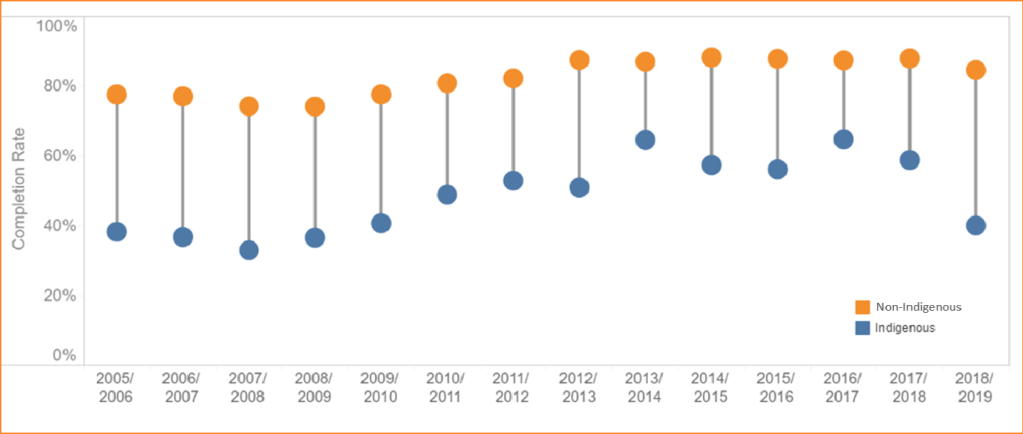 - From 2005-2019, indigenous students had low rates of completion from the Greater Victoria School District (33%-65%)