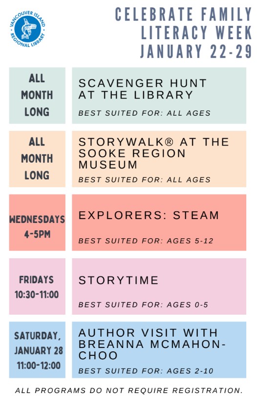 Daily events hosted by the Vancouver Island Regional Library’s Sooke branch